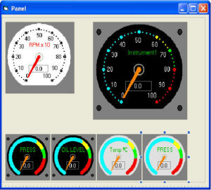Mediante el control «Instrument» podrá crear una serie de instrumentos de aguja personalizados para los distintos requerimientos en los paneles de controles automáticos. Configurando la escala del instrumento obtendrá la flexibilidad necesaria para crear un instrumento acorde a cada necesidad, de tipos Analógicos y Analógicos/Digitales.